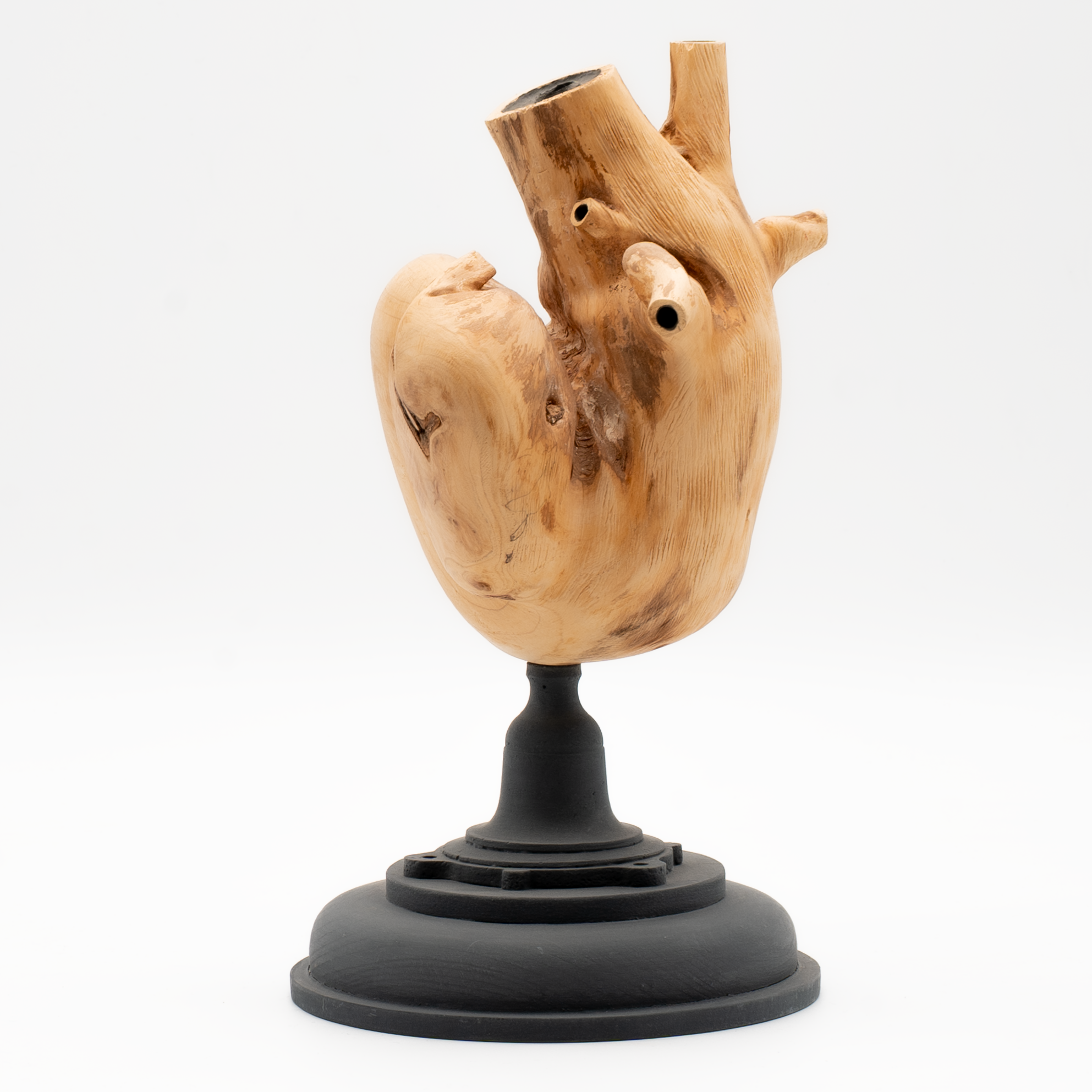 Das gewachsene Herz ist eine Skulptur aus Birkenholz. Es hat eine Größe von 16 x 13 x 22 cm.